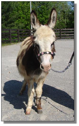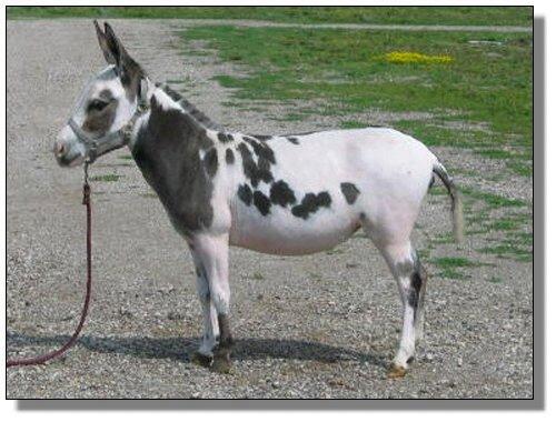 is a 31.5” dark brown/gray and white spotted jennet with a full pedigree.
